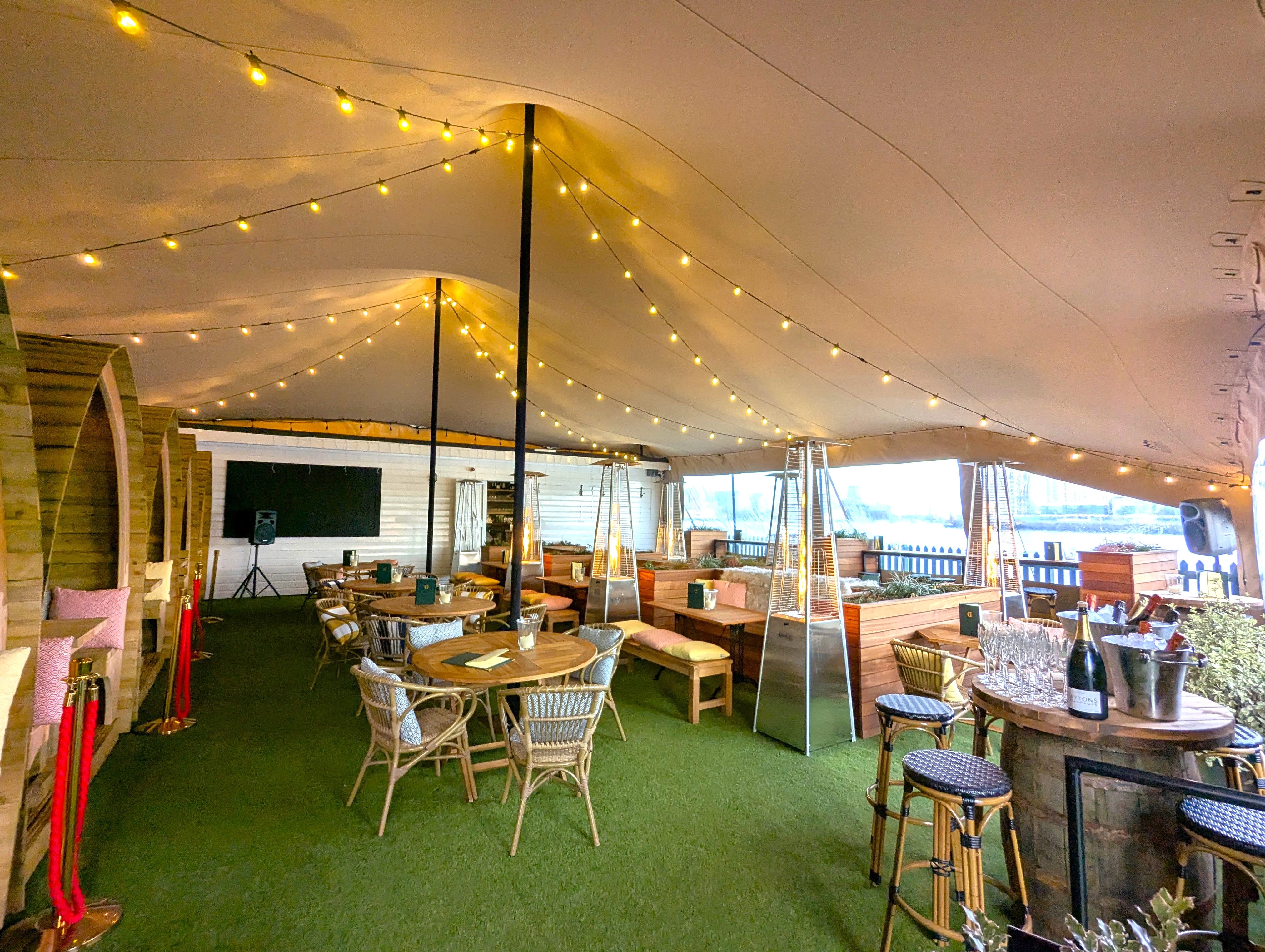 The space is fully covered (with a Marquee) and heated from October to March.